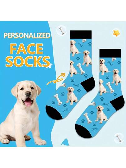 1 Pair Of New Puppy Bones Custom Socks, Couple Custom Socks, Graduation Gift, Fun Turtlenecks Custom Socks As Men/Women's Gifts, Sports Socks, Custom Sports Socks, Birthday Custom Gifts, As Valentine's Day Gifts, Men's Novelty Socks - Blue - View 1