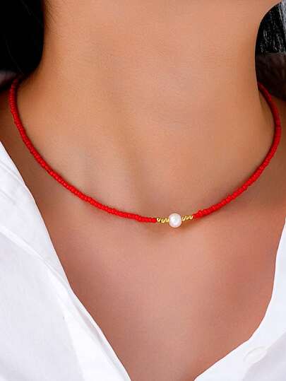1pc Handmade Rice Bead & Pearl Decor Pendant Necklace For Women, Suitable For Daily Wear - Rice Bead Necklace - View 1