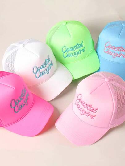 1pc Y2K Embroidered COASTAL Drawstring Net Cap Truck Driver Mesh Hat, Breathable Adjustable Golf Sun Hat, Women's Fashion Curved Brim Sun Hat, Men/Couple Summer Sun Protection Hat - Embroidery - View 1
