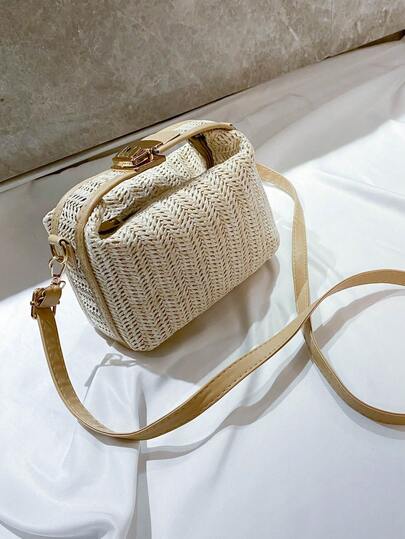Mini Minimalist Straw Bag, New Woven Straw Handbag, Fashion Women's Bag, Multifunctional Shoulder Crossbody Bag, Summer Beach Gift For Girls, Ladies, Students, Summer Essential, Perfect For Vacation And Holiday, Beach Essential, Beach Supplies And Summer Necessity, Latest Holiday Bag - Beige - View 1