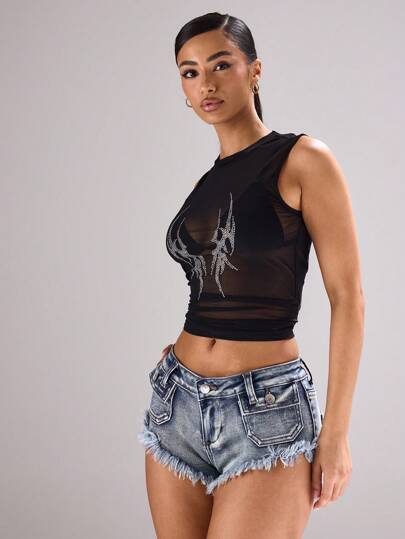 MUSERA Acid Wash Shred Distressed Hem Mini Shorts Festival Concert Rave Club Summer Sexy Backstage Evening Party Elegant Spring - Blue - View 1