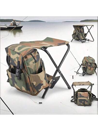 Oxford Fishing Backpack Folding Chair, Camping And Fishing Dual-Purpose Kit, Large Capacity + Load-Bearing 100KG, Mountaineering And Hiking, Cycling Equipment Backpack Folding Stool - Multicolor - View 1