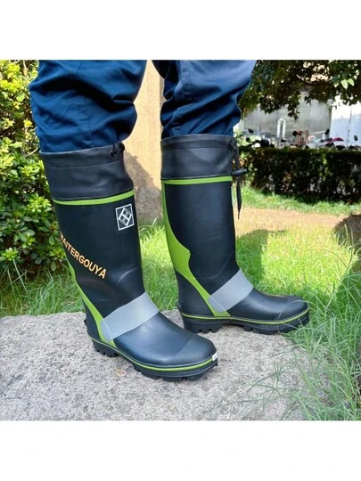 Unisex Rain Boots, Black & Green, Outdoor Fishing Shoes, Tall Rain Boots, Steel Studded Wellies - Black - View 1