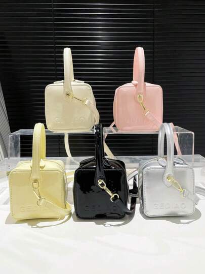1pc Spring/Summer New Solid Color PU Leather High-Quality Letter Decor Small Square Handbag & Crossbody Bag - A - View 12