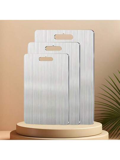 (3pcs/1pc) Stainless Steel Cutting Board Set, For Kitchen Chopping, Small Cutting Board, Double-Sided Graded Cutting Board Set, Suitable For Various Cooking Tasks - Silver - View 1