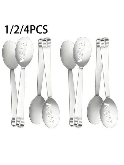 1/2/4pcs Stainless Steel Tea Bag Squeezer Clips, Ice Tongs, Strainer Clips, Snack & Fruit Clips - Silver - View 1