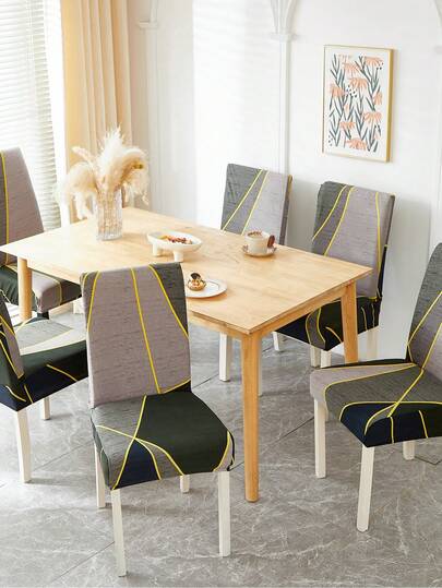 1/4/6pcs Geometric Pattern Elastic Dining Chair Covers, Printed Slipcovers Suitable For Home Decor, Hotel, Restaurant And Party, Milk Silk Chair Protector - Multicolor - View 10