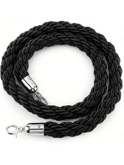 1.5M Twisted Queue Rope Barrier Post Stand Divider Crowd Control Stanchion For Clubs Hotel Bank Hospital (Black) - Black - View 1