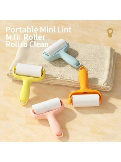 1 Box 3 Rolls/90 Sheets Mini Lint Roller, Multi-Color Refillable Sticky Roller, High Adhesive Pet Hair Remover, Portable Lint Brush - Orange - View 1