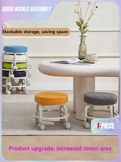 1 Family Pulley Children Learn Step Chairs, Small Stools, Dwarf Stools, Slouchy Wheels Sliding Beautiful Sewing Small Chairs, Net Red Bench, Beautiful Seam Nail Mobile Sofa Stools Small Stool - Multicolor - View 1