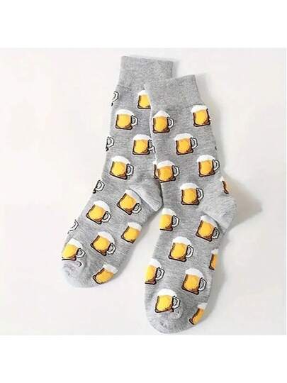 1 Pair Beer Pattern Socks, Unisex Mid-Calf Socks - Multicolor - View 1