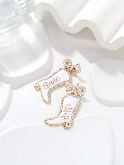 1 Pair Fashion Metal Enamel Rhinestone Bow Initial Cowboy Boot Earrings, Personalized Western Style For Valentine's Day, Wedding Season - Bowknot Diamond Letter Boot Earrings - View 2