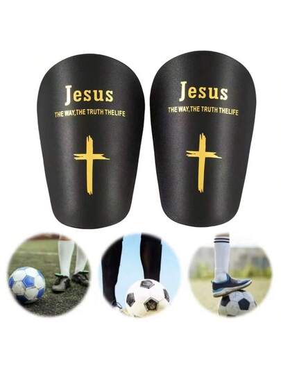 1 Pair Football Mini Shin Guards, Golden Cross Pattern, Unisex Thick Sports Protective Gear, Sturdy Anti-Collision, Leg-Hugging Design, Suitable For All Seasons - Golden Cross - View 1