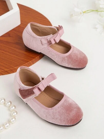 1 Pair Girls Velvet Soft Bottom Mary Jane Flat Loafers, Princess Driving Loafers Suitable For Spring And Autumn - Pink - View 1