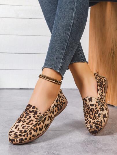 1 Pair Leopard Print Fashion Animal Pattern Outdoor Casual Slip-On Flat Loafers, Suitable For All Seasons - Leopard - View 1