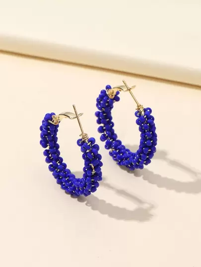 1 Pair Minimalist Solid Color Geometric Beads Earrings, Fashion & Versatile - Royal Blue - View 1