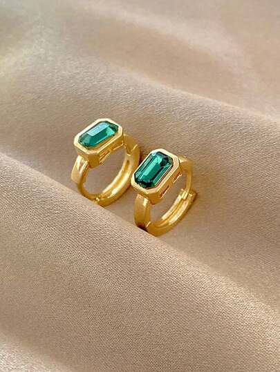 1 Pair Unique Niche Design Versatile Retro Luxurious Green Elegant Mini Hoop Earrings - Yellow Gold - View 4