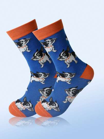 1 Pair Women's Colorful Puppy Pattern Mid-Calf Socks, Fashionable, Versatile, Soft And Comfortable For Everyday Wear - Multicolor - View 1