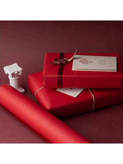 1 Red Kraft Paper Roll -For Christmas Gift Packing - Ideal For Crafting, Wrapping, Packing & Floor Covering - High-Quality, Flexible With Adhesive Labels - Red - View 11