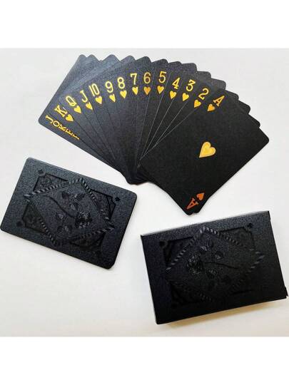 1 Set Of Black Poker Cards, Cool Foil Cards, Waterproof Poker Cards And Poker Set With Box - Black - View 1