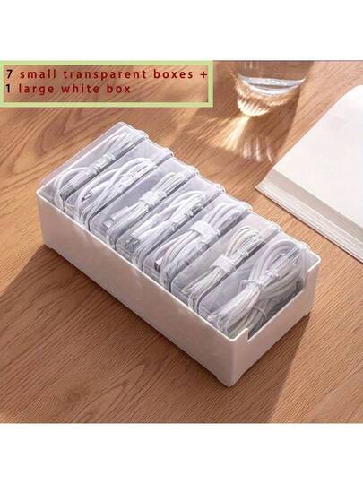 1 Set Plastic Cable Organizer Box With 7 Transparent Storage Containers - Non-Waterproof, Multi-Purpose Desktop Cable Management, Chargers And Accessories Organizer With Cord Winder (Cables Not Included) - Multicolor - View 1