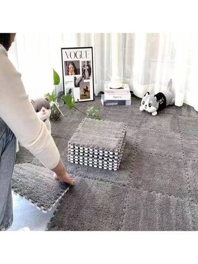 10/12pcs Fluffy Puzzle Floor Mat Rug, Flooring Tiles Soft Climbing Area Rugs, Patchwork Carpet, Anti-Drop Bedside Mat, DIY Rugs, Square Patchwork Grounding Mat, Bedside Carpet, Pile Rug, Large Area, Living Room Bedroom Decor 11.8inX11.8in - Multicolor - View 37