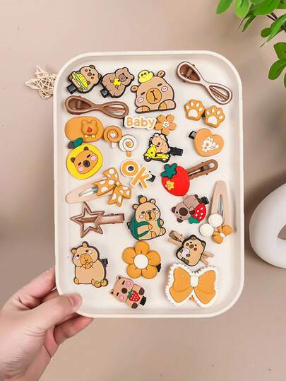 10/20pcs Cute Capybara Cartoon Flower Bow Fruit Hair Clips Capybara Combination Hair Clip Set Hair Accessories - Multicolor - View 7