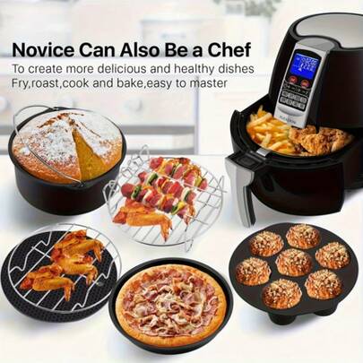 10-Piece Air Fryer Accessory Set - Includes A 7-Inch Nonstick Pizza Pan, Cake Pan, Grill Rack, And 7-Hole Mold - Dishwasher  - Baking And Grilling Tools - Silver - View 1