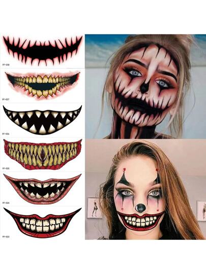 10 Scary Big Mouth Face Stickers Waterproof Tattoo Stickers - Multicolor - View 6