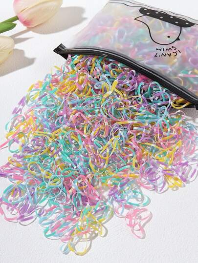 1000pcs Disposable Mini Elastic Bands, Strong And Durable, Transparent, Black Hair Ties In A Bag Casual - Multicolor - View 9