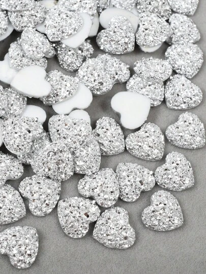 100pcs/Pack 12mm Resin Heart Shape Flat Bottom Diamond, Resin Rhinestones For DIY Crafts And Clothing Decoration - Silver - View 1