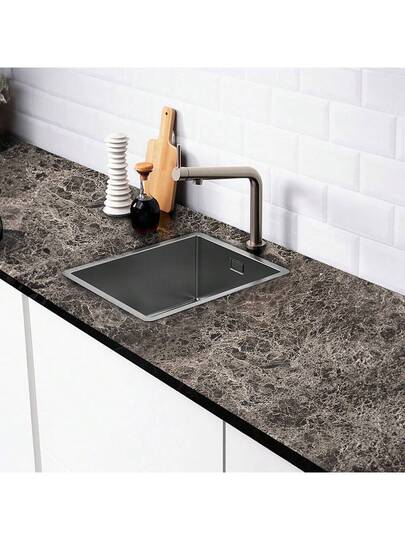 10M Gloss Marble Vinyl Film Self Adhesive Cupboard Kitchen Worktop Sticker Wrap - Black and White - View 5