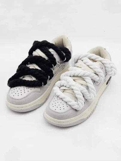 Custom Shoelaces For DUNK, Skateboard Shoes, Pure White DIY Pink/Green/Khaki Thick Linen Shoelaces 15mm Extra-Long - White - View 1