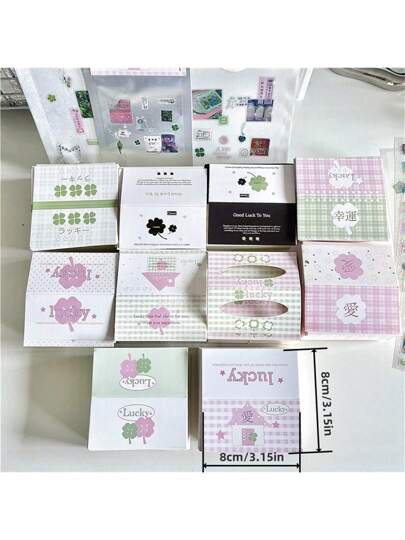 10pcs Cute Green And Pink Four Leaf Clover Card Header Photo Card Packaging Materials - Color - View 1