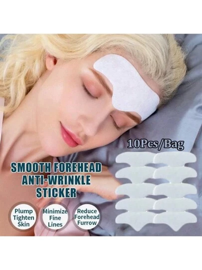 10pcs Forehead Anti-Wrinkle Patch Face Lifting Sticker, Night-Time Wrinkle Reduction And Fade - White - View 1