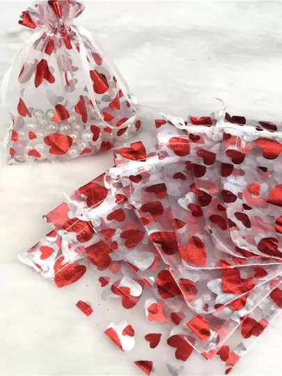10pcs Organza Gift Bag, Heart Pattern Drawstring Candy & Cookie Party Favor Goodie Bag For Festival, Birthday Party Supplies - Multicolor - View 1