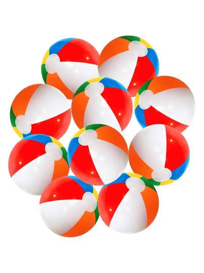 10pcs Inflatable Beach Ball, 11.81 Inch Pool/Beach Party Decoration Balloons, 6 Colors Outdoor Activities Sports Accessories, Beach Essentials, Pool Float - Multicolor - View 1