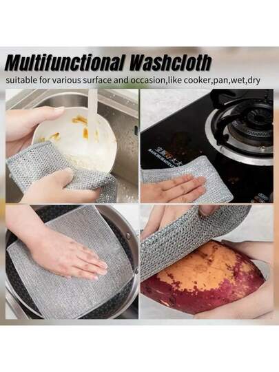 10pcs Metal Wire Cloth, Everyday Cleaning Cloth,Kitchen,Kitchen Items,Cleaning,Kitchen Towel,Cloth - Silver - View 10