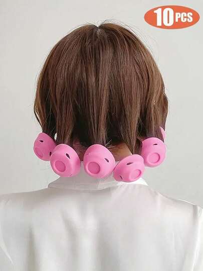 10pcs Pink Silicone Heatless Hair Curlers Set - Enhances Natural Curls For All Hair Types, No Perm Needed, Easy DIY Styling- 2 Sizes - Pink - View 1
