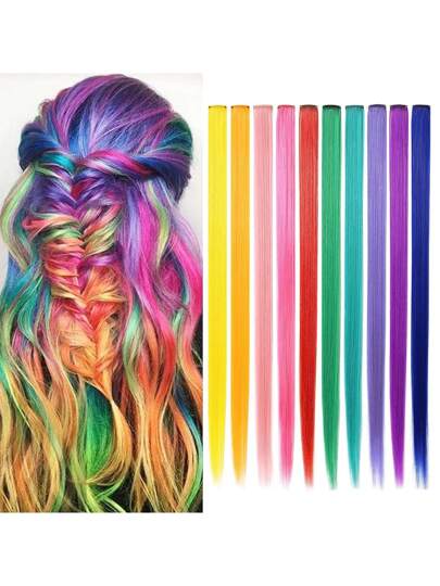 10pcs Princess Multi-Color Highlights Striped Synthetic Hair Extension Clip-In Hairpieces, Rainbow, 22 Inch, For Beauty And Personal Use - Red Ombre - View 1