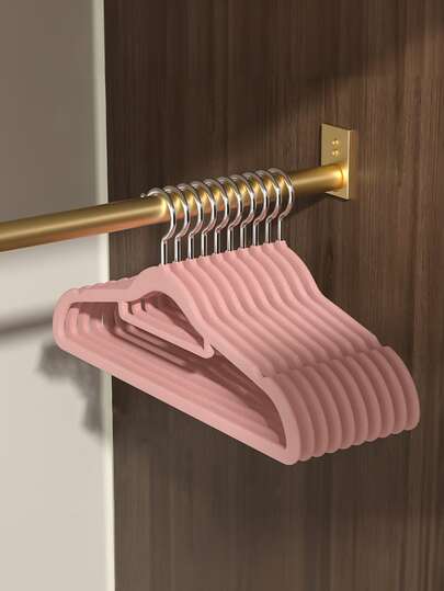 10pcs Velvet Material Clothes Hanger, Non-slip & Traceless Solid Color Pink Velvet Hanger For Home Use - Pink - View 1