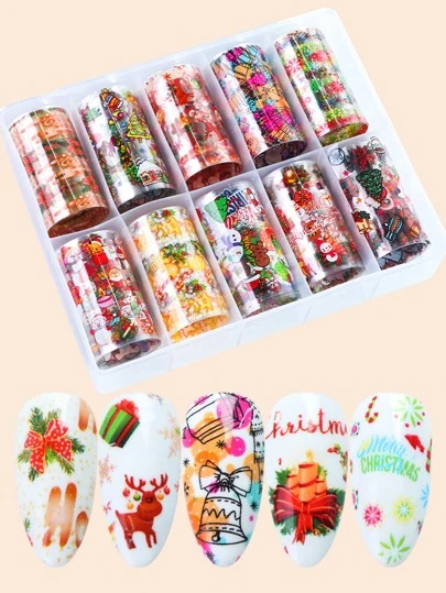 10rolls Christmas Cartoon Graphic Nail Transfer Foil - Multicolor - View 1