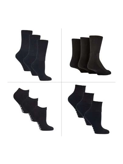 IOMI 12 Pack Diabetic Socks All Year Round Bundle (Black) - Fast Shipping And Quick Delivery - Black - View 1
