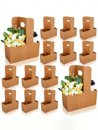 12 Pcs Coffee Flower Box, Handheld Souvenir Box, Bubble Tea Cup Takeaway Box, Couple Gift Fresh Flower Box - Khaki - View 1