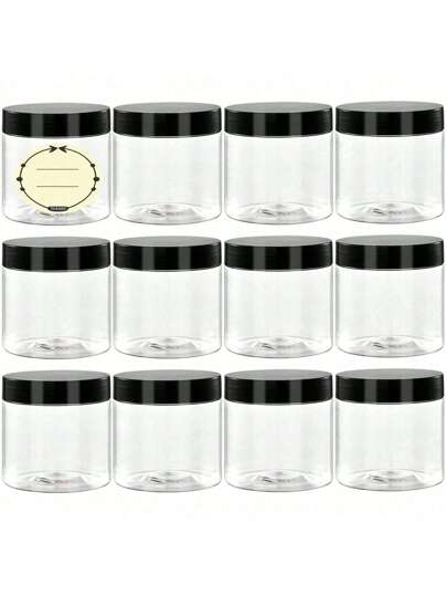 12Pcs Plastic Jars With Lids, 4OZ Slime Containers Empty Clear Plastic Jars Refillable Plastic Cosmetic Containers With Screw On Lids For Kitchen Use Lotions & Beauty Products - Transparent + Black Lid - View 1
