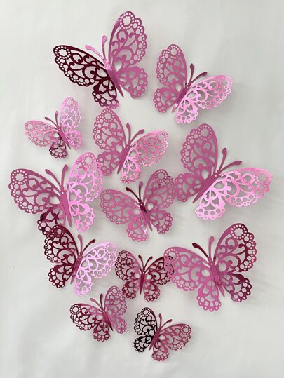 12pcs 3D Hollow Butterfly Wall Sticker, Pink Paper Butterfly Sticker For Home Decor, Stickers, Wall Decal, Vinyl Decal For Home Decorations, Spring Decoration Items Refresh Your Home, Rama Decoration Stickers School Decor School Surprise Dormitory Decor Back To School Room Decor School Supplies - Hot Pink - View 1