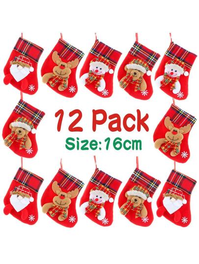 12pcs Christmas Stocking Hanging Decoration - Red - View 5