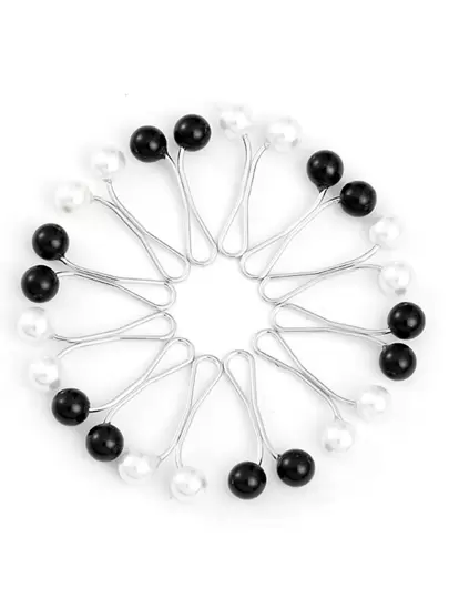 12pcs Women's Fashion Candy Colored Scarf Clip For Headscarves And Silk Scarves - Black and White - View 1