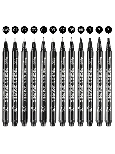 12pcs Letter Graphic Marker Pen - Black - View 1