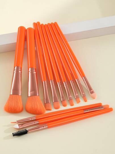 12pcs Neon Orange Makeup Brush Set,Brush Set,Makeup Brush Kit,Make Up Brush Set,Make Up Set Complete,Makeup Brush Set,Complete Makeup Kit,Brush Kit,Brushes Makeup Set,Makeup Gift Set,Set - Multicolor - View 1